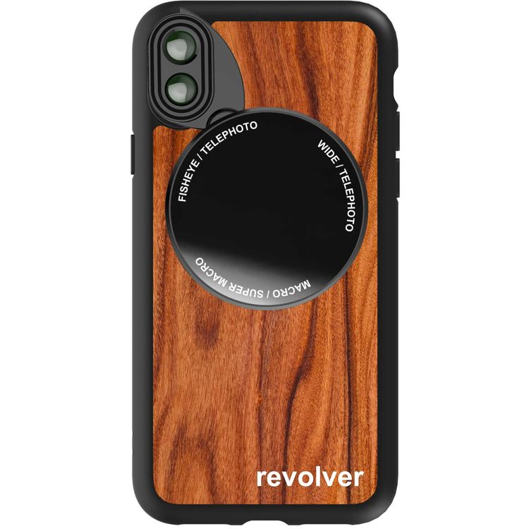 Ztylus Revolver M6X Small Lens Kit (Fisheye Telephoto/Wide Angle/Macro/Super Macro) Compatible for iPhone X / Xs - Quick Flip Lens - Magnetic Connection Attachment - Foever Wood
